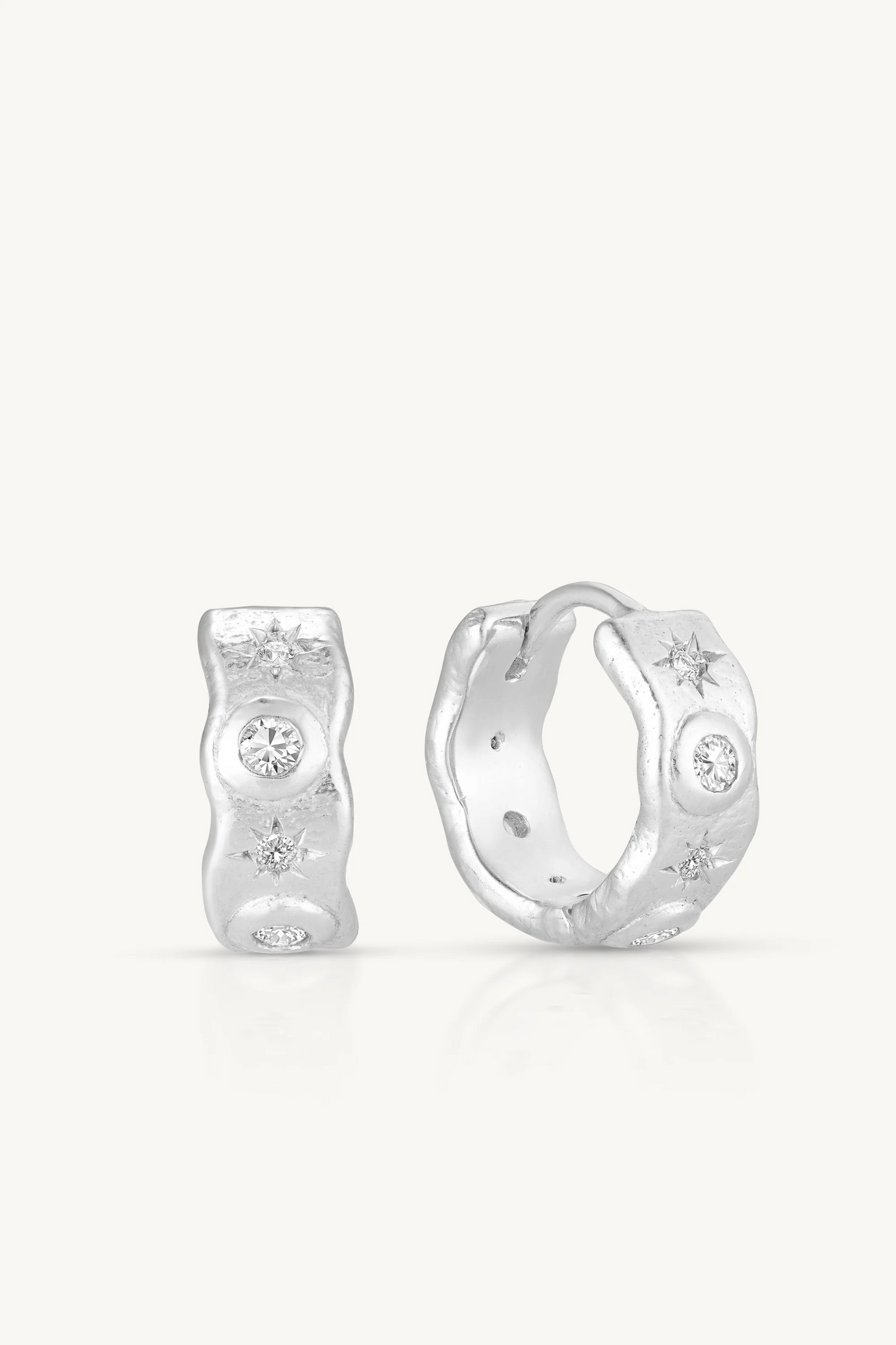 Glowing White Topaz sits at the heart of every starburst, with bezel-set stones illuminating the spaces between. Their organic, wavy shape is perfect for adding a touch of stardust to the everyday.